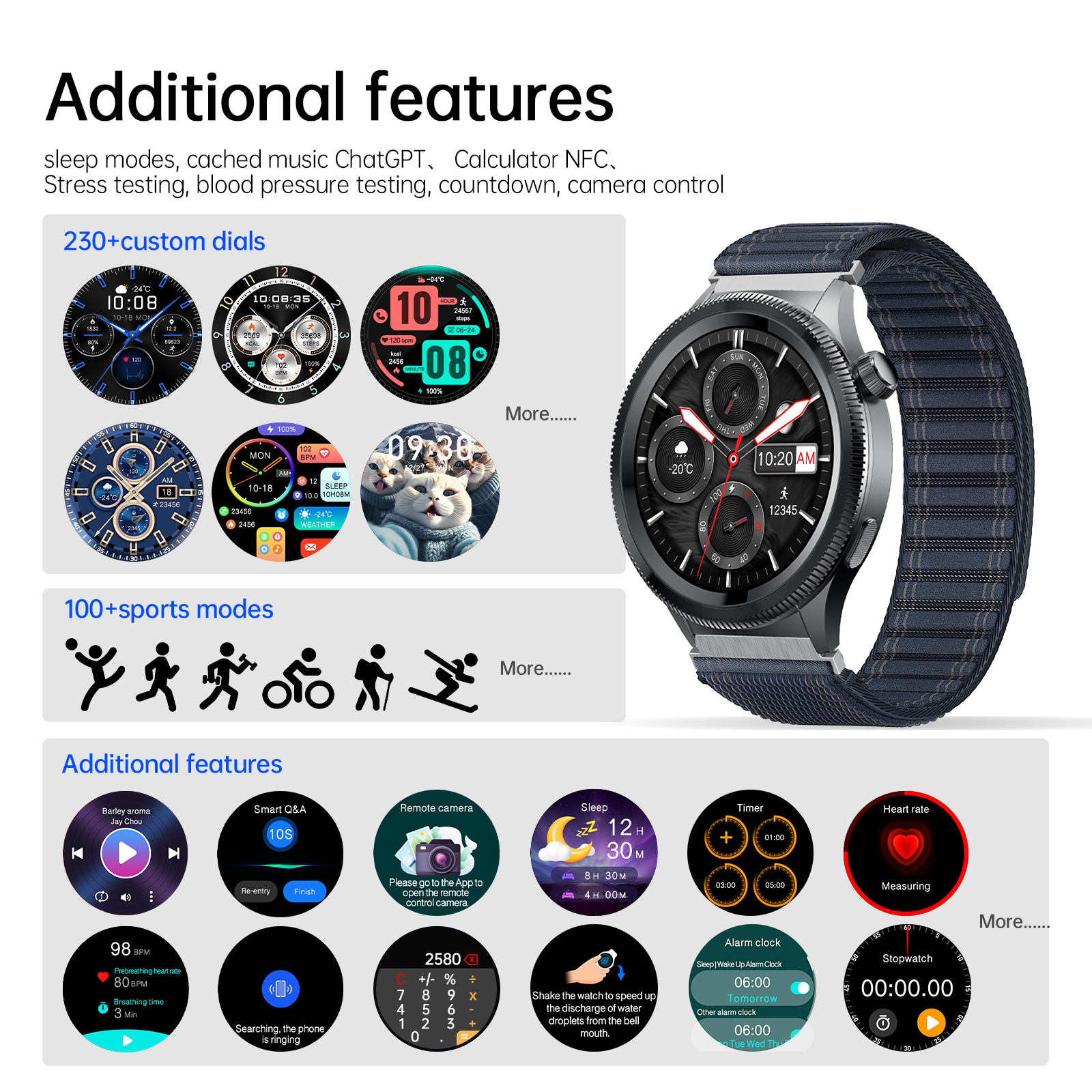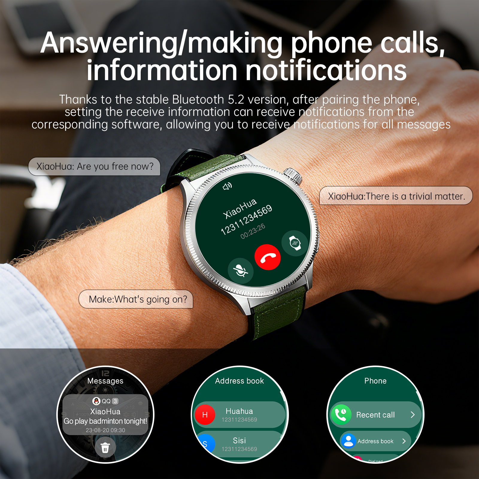 Supports message notifications from all apps, allows answering and making calls after pairing with a phone, supports 7 days of standby time, and charges in 1-2 hours.